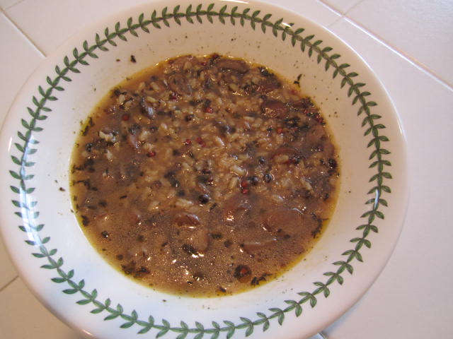 Garlicky Baby Bela Mushroom Soup with Brown Rice