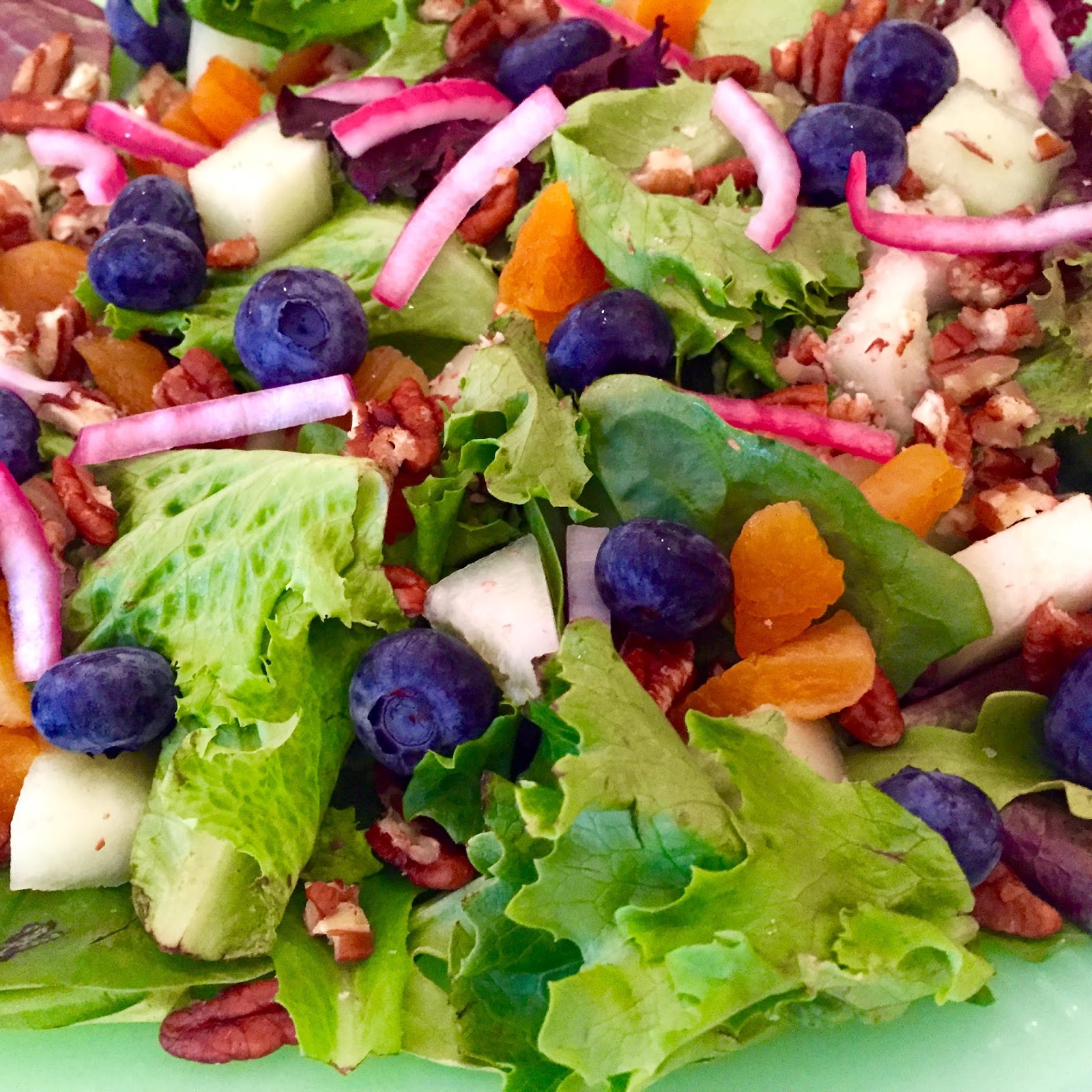 Tart Field Greens with Melon, Blueberries, Apricots and Pecans