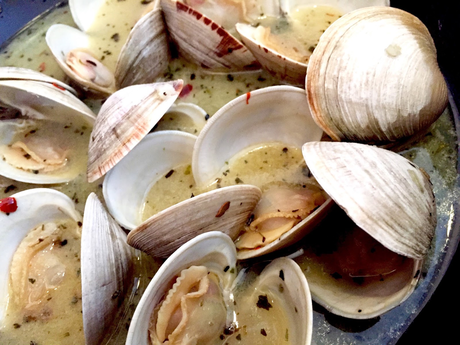 3. Add butter and clams, cover, and cook till the clams open about ten minutes. Discard any that do not open. Transfer clams to plate. Serve with fresh bread and a glass of crisp white wine.