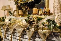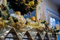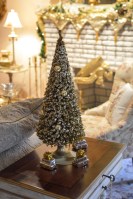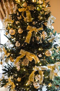 In the living room, we go all out with gold decorations on the tree and throughout the room. I have been called a golden girl! I love all that glitters and is gold.