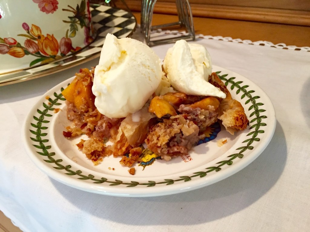 August is peach season with fresh picked peaches in all the markets. Peach pie is one of my favorites pies(I know I say that about every pie!). Sometimes you have to do something different, go a little rouge, shack it up! That’s what I did with this Peach Pie, I added Peach Schnapps to the filling, added a streusel topping all in a phyllo pie crust. I just let my creative cooking ideas flow for this show stopping pie!