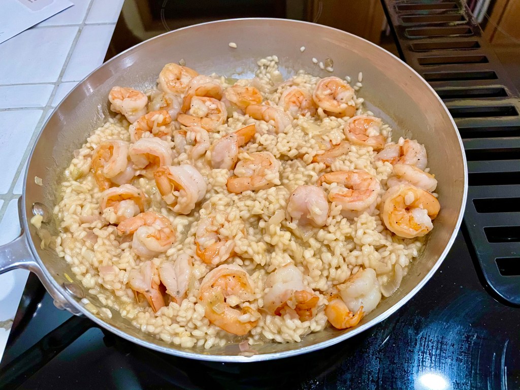 Add the shrimp. Mix in additional broth if needed, 1/4 cup at a time, until the risotto is creamy.