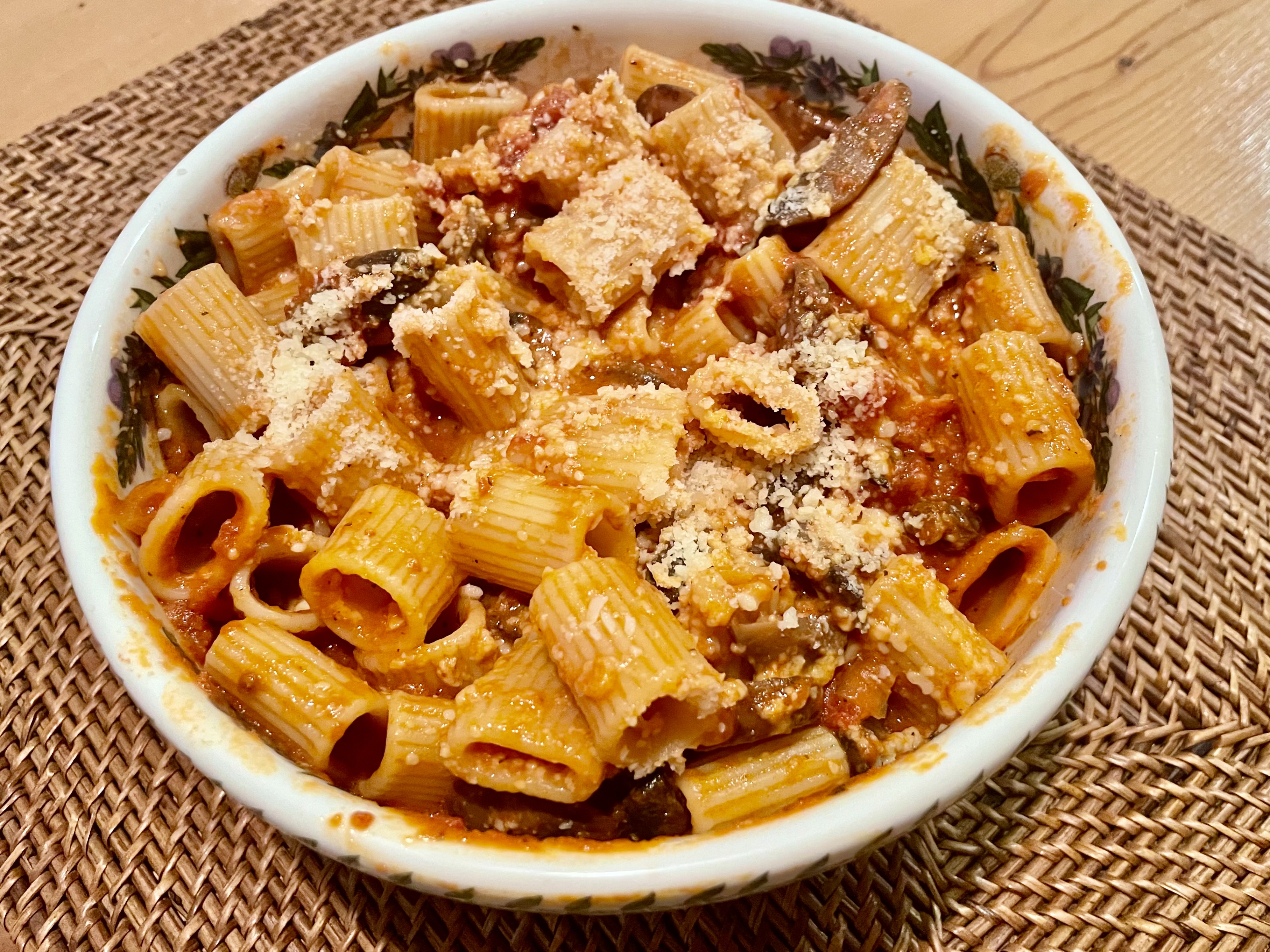 The first recipe that I made was the Mushroom Bolognese. I made the recipe exactly like Ina, except I substituted no fat greek yogurt for Italian mascarpone cheese. And for the pasta, I used DeCecco’s Mezzi Rigatoni. Although I love mascarpone, especially in tiramisu, I wanted to cut fat and calories after a holiday season filled with rich food. The next time I make it, I’ll try the mascarpone cheese. Am maybe splurge with a tiramisu dessert.