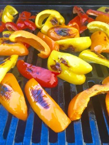 My town, like many towns, has a wonderful weekly farmer’s market where local farms sell fresh produce. Beautiful ripe heirloom tomatoes glistening with morning dew, the deepest aubergine eggplant, plump zucchini, and red, orange, and yellow peppers just beckon to be grilled.