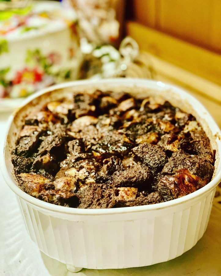 I love all kinds of Bread Pudding. I have to say that my favorite is Chocolate Bread Pudding with Bourbon Sauce. It is a wonderful dessert for a snowy day. In between New England blizzards, to make the best of the weather, I throw a dessert party for snowbound neighbors and friends. Rich desserts, warm spirited drinks, glowing candles, a cozy fireplace, and friends make for a festive gathering where we forget the howling wind and snow. We forget about longing for warm Spring days!