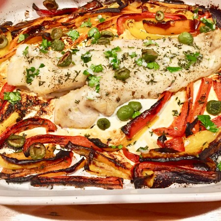 Roasted Hake and Peppers with Lemon Vinaigrette