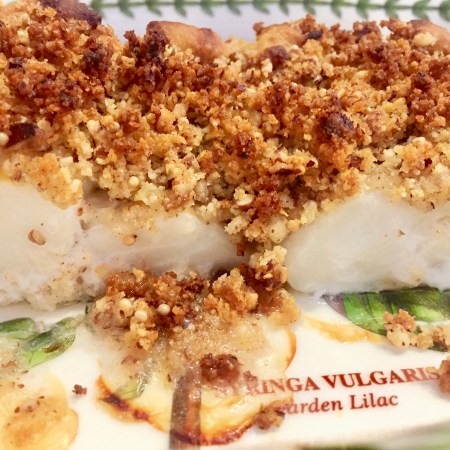 Pecan Crusted Cod with Mustard and Maple Syrup