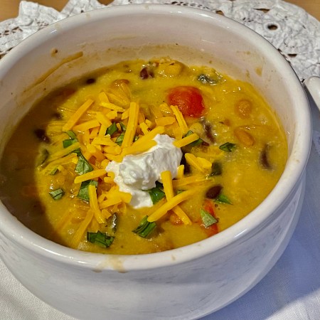Slow Cooker Sweet Potato, Cauliflower and White Bean Soup